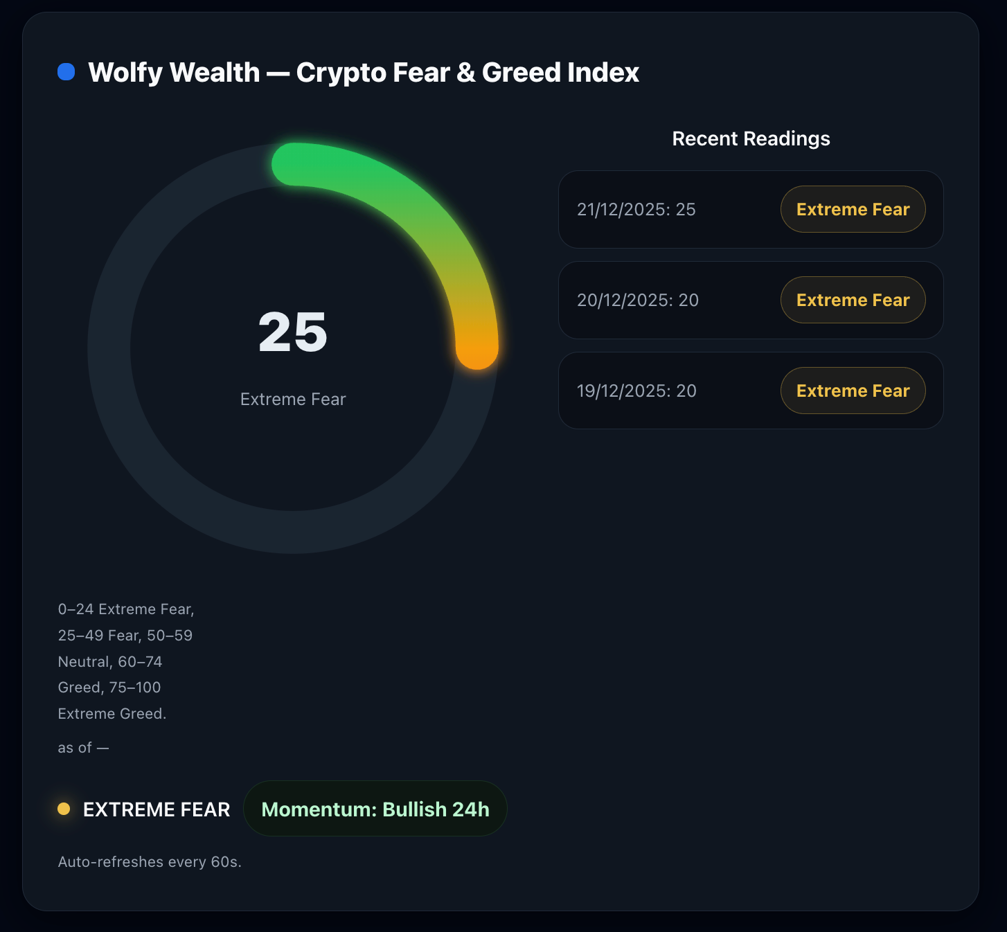 Want real-time alerts when fear hits extremes? Looking for detailed entry setups and risk management plans? Wolfy Wealth PRO delivers deep crypto analysis, on-chain insights, and model trades to help you capitalize on market sentiment shifts. Get the full playbook and savvy signals in today’s Wolfy Wealth PRO brief.